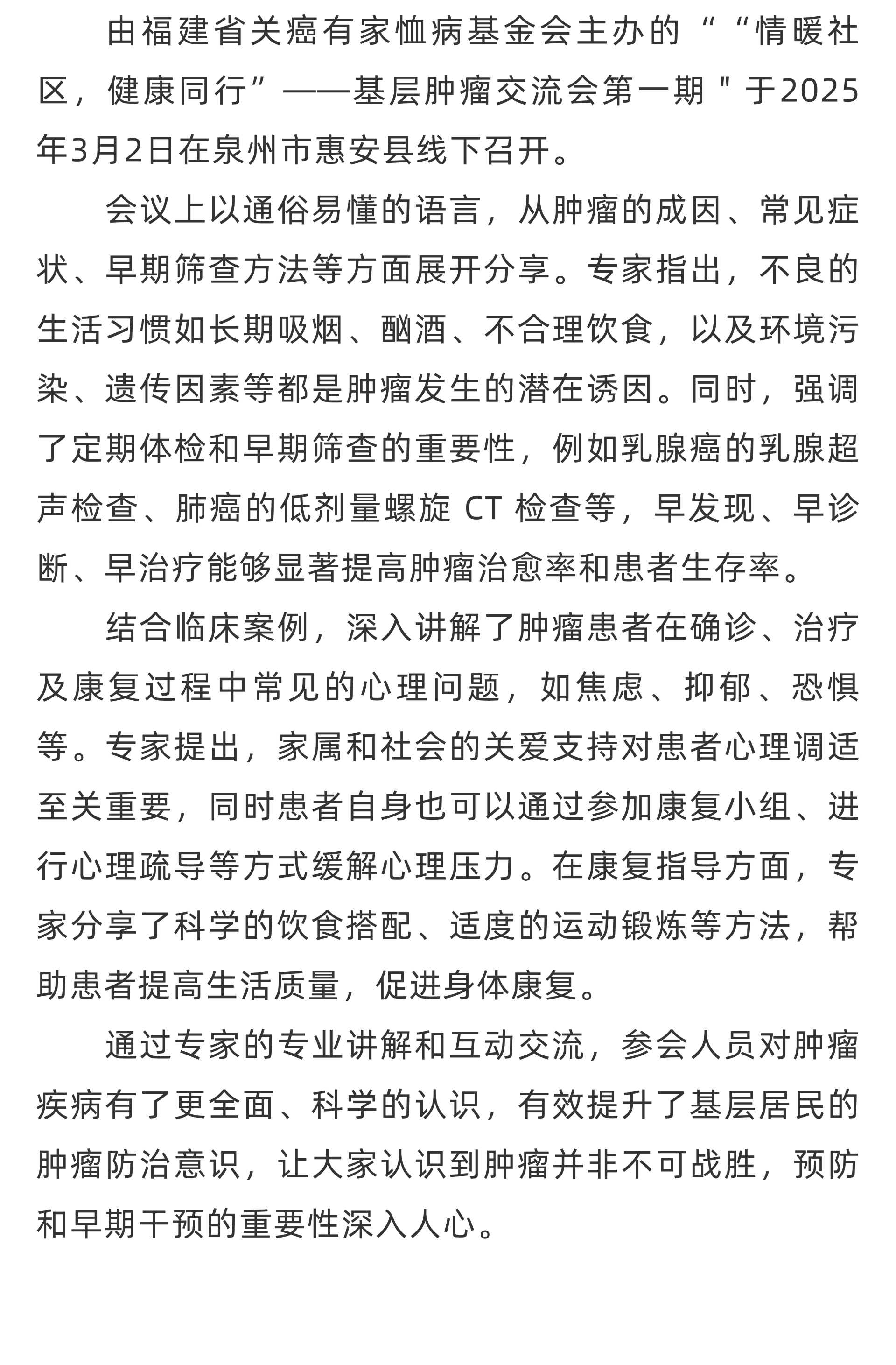 会议公示|“情暖社区,健康同行”——基层肿瘤交流会第一期